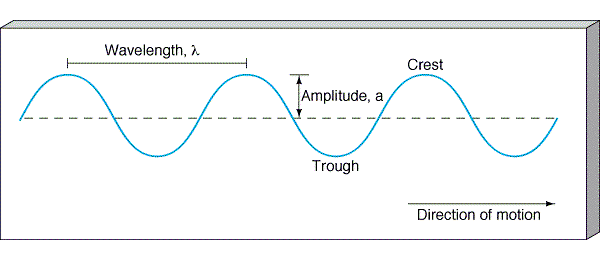 - Wavelength (λ): distance between two consecutive peaks/troughs (m)